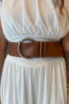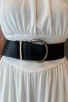 Confeccionado em material sintético de alta qualidade, possui acabamento fosco com textura leve e fivela oval dourada envelhecida, que traz um charme atemporal e moderno ao mesmo tempo. O modelo é largo e estruturado, perfeito para marcar a cintura de vestidos, macacões e peças de alfaiataria, garantindo um visual equilibrado e estiloso.