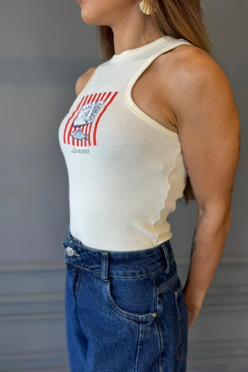 A Regata Canelada Les Sardines é a escolha perfeita para quem ama peças estilosas e confortáveis. Feita em malha canelada com ótimo caimento, ela tem decote cavado que valoriza os ombros e deixa o look moderno e feminino.