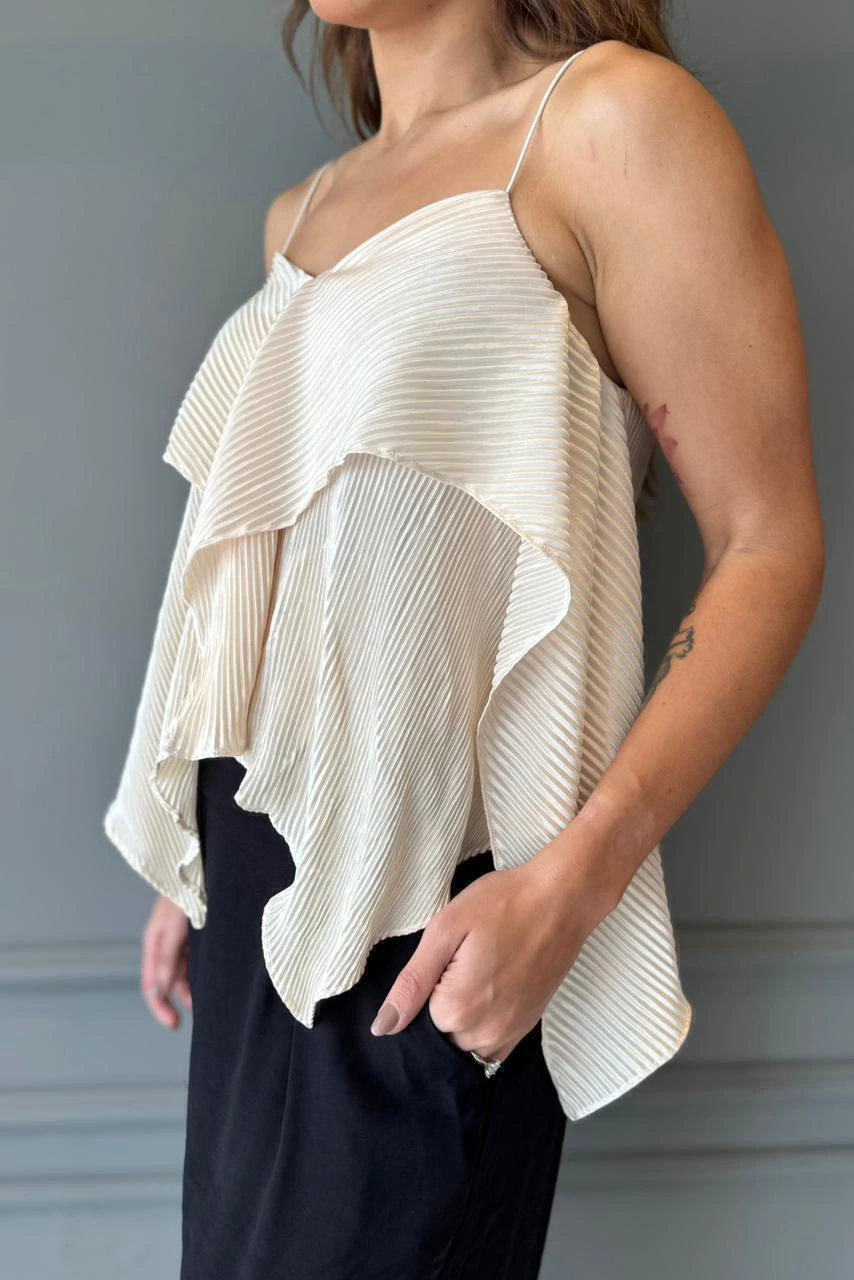 A Regata Plissada Off é perfeita para quem busca leveza e elegância no dia a dia. Confeccionada em tecido plissado fluido, ela possui modelagem soltinha e caimento em camadas que trazem movimento e sofisticação.