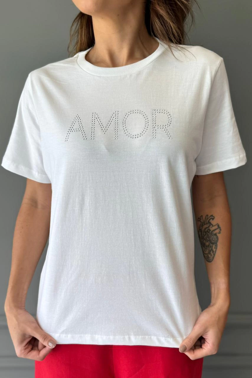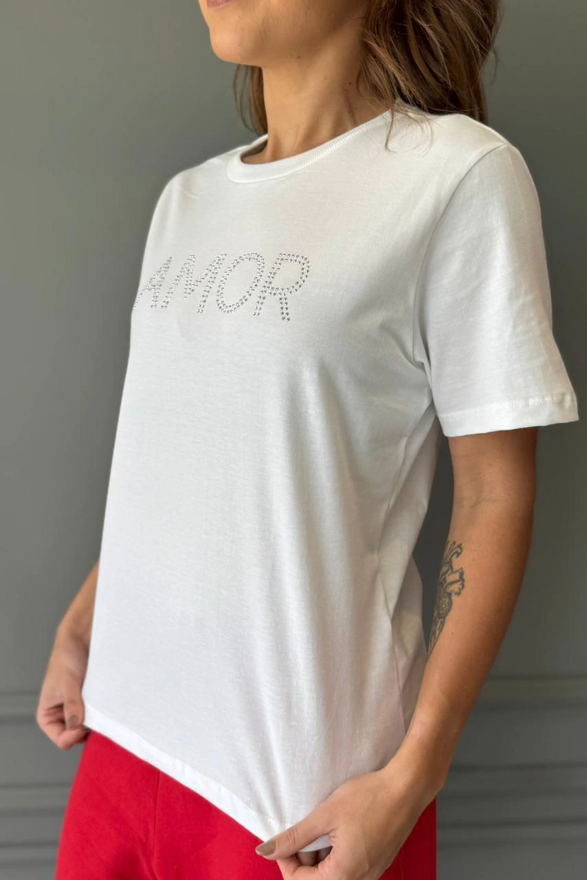 A T-shirt Branca com Strass é aquela peça básica com um toque de brilho que faz toda diferença.