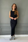 Vestido longo canelado preto