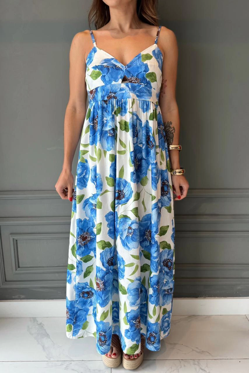 O Vestido Floral com Alças Azul é a peça perfeita para quem ama leveza, feminilidade e um toque de frescor em qualquer look. Com estampa floral em tons vibrantes de azul e folhagens verdes, ele traz um visual alegre e sofisticado na medida certa.